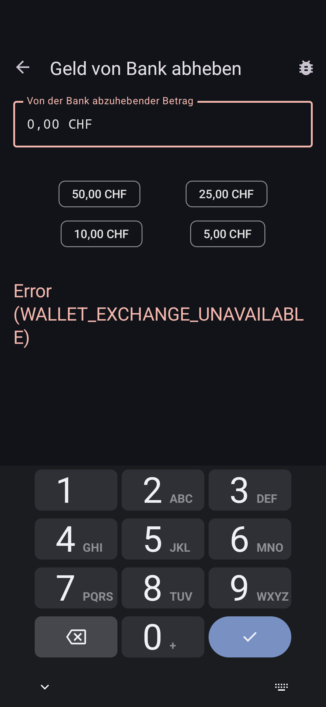 | Steps To Reproduce | 1. scan an QR-Code with a wrong taler-URI for withdrawal, e.g. taler://withdraw-exchange/test.taler.net/ (note the missing "exchange." prefix) 2. see the form for CHF (probably first configured exchange) with an cryptic error (see screenshot) 3. notice that it is possible to click on one of the default amounts and the flow will completely change to the other exchange | ||||