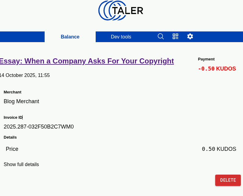 | 0010479 | Taler | wallet (WebExtension) | public | 2025-10-09 12:52 | 2025-10-31 20:49 |