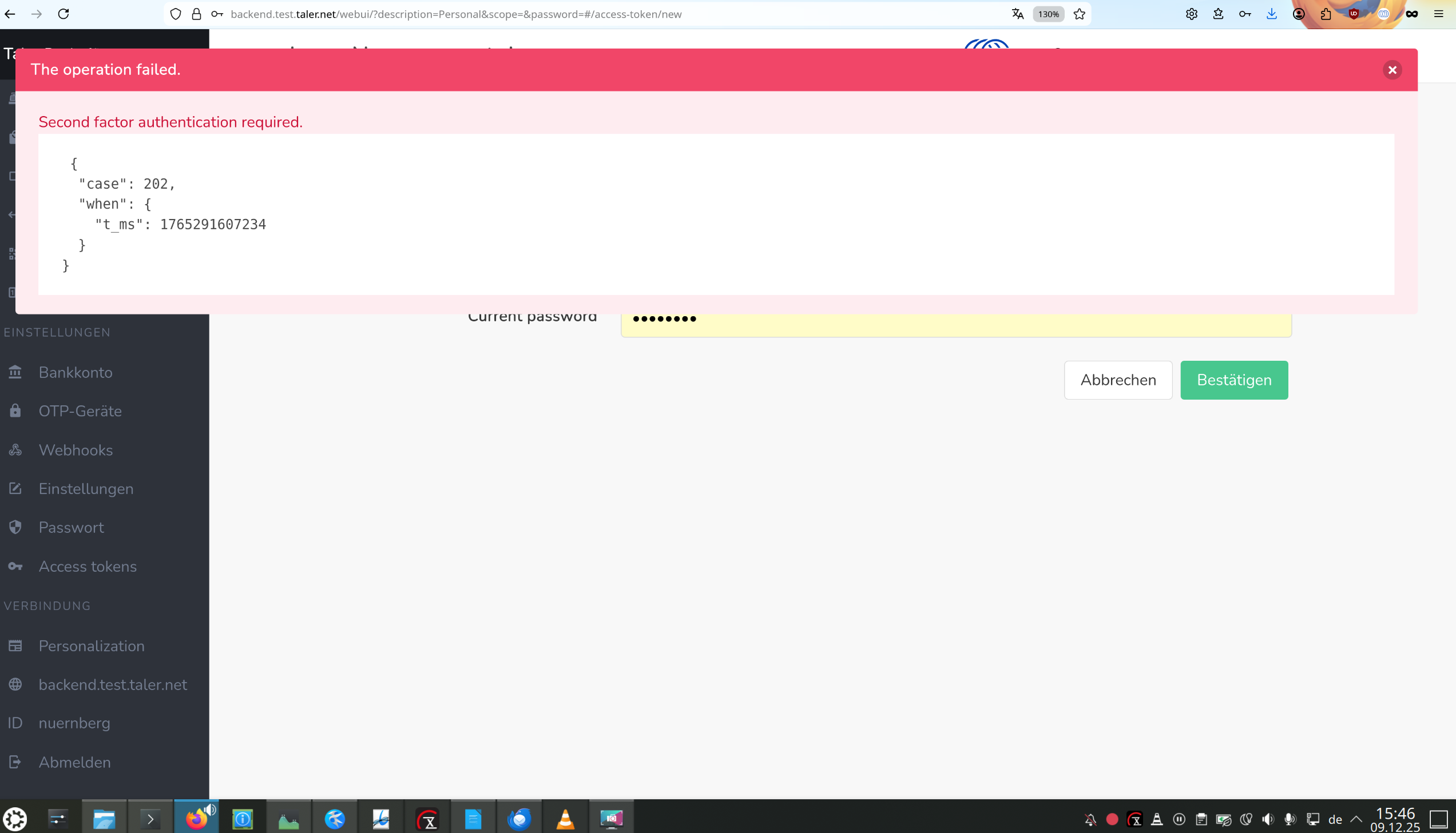 | 2025-12-09 16:59 | Stefan | Summary | Merchant Backoffice SPA: Access tokens on backend.test.taler.net are dysfunctional => Merchant Backoffice SPA: Access tokens on backend.test.taler.net are dysfunctional [urgent] |
