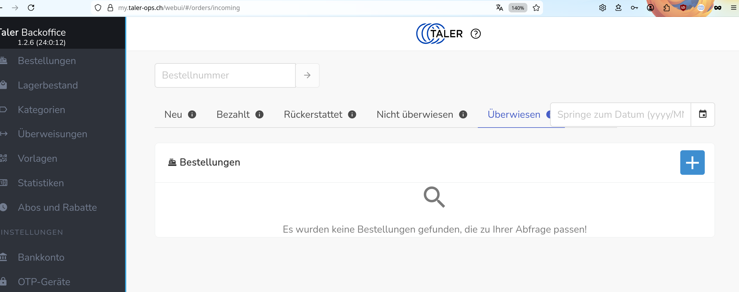 | Description | On the orders page in an admin instance of the Taler Merchant Backend (we tested v1.2.6 on my.taler-ops.ch on Jan 13), there is an overlapping field which hinders merchant users to see the tab "all" under certain circumstance (like e.g. if the screen is too narrow, when users zoom in, or when the language just requires more space for the tab titles to be displayed). We recommend to place the date filter field in the same line with the field filtering for order IDs - and not with the tabs. | ||||