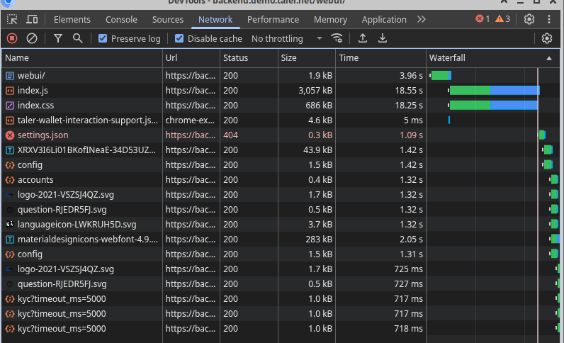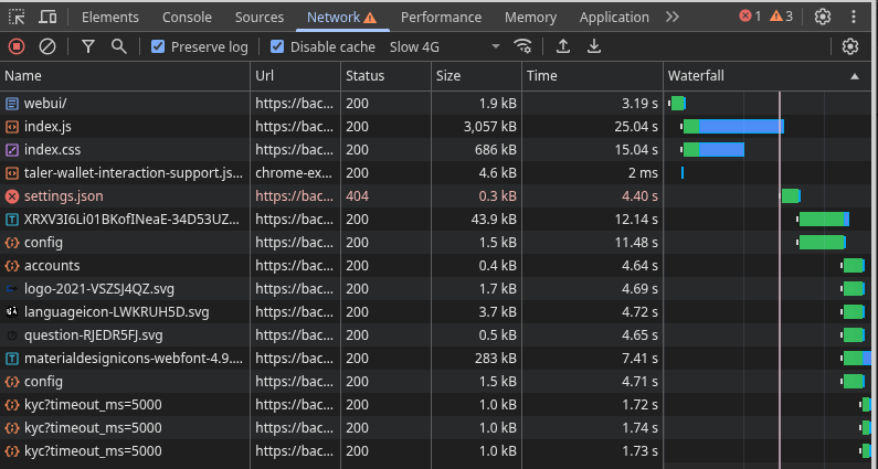 | Description | we should target 1) first contentful paint under the second or less 2) time to interactive under a second (after FCP) on the defition of chrome "slow 4g" connection" // ~1.6 Mbps down download: 1.6 * 1000 * 1000 / 8 * .9, // ~0.75 Mbps up upload: 750 * 1000 / 8 * .9, // 150ms RTT latency: 150 * 3.75, https://github.com/ChromeDevTools/devtools-frontend/blob/3de3f2c2bc22ce781b8cb141897fe04385b71585/front_end/core/sdk/NetworkManager.ts#L434 Before FCP we need to get minimal assets (potentially cached) After FCP but before TTI we should check /config /settings.json and all the other APP specific initial request. Right now we are close to 1 minute tested from ARG to backend.demo.taler.net | ||||