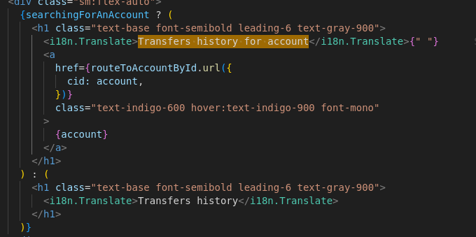 the i18n key for that places is the correct one: "Transfers history for account {account}" but the English translation (!!) is wrong. I'm not sure how that ended there |