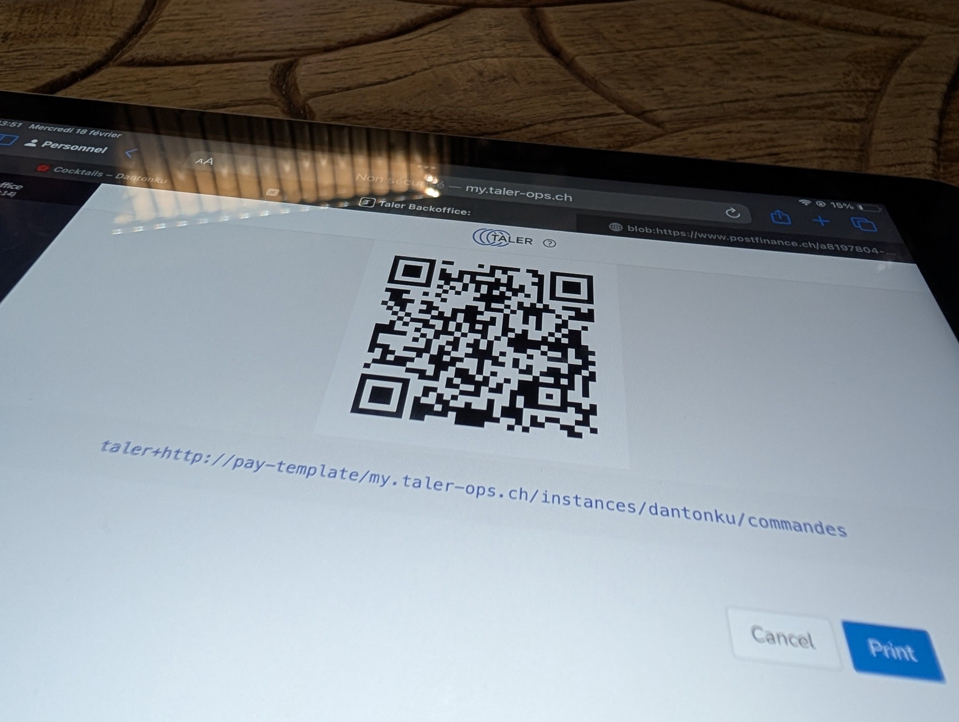 | Description | The merchant was running a somewhat old iOS version on an iPad (don't know the exact version), and the QR template showed with the `taler+http://` prefix, which caused issues with the wallet regarding the non-HTTPS policy. | ||||