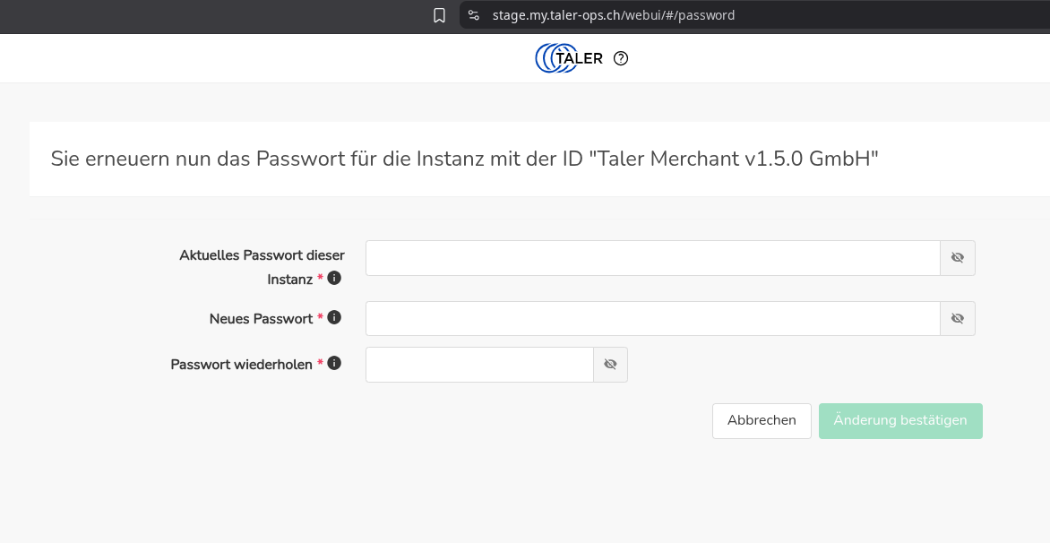 | Description | Unlike in recent prior versions, in taler-merchant-v1.5.0 it's possible to change a PW (given the old one) without any additional MFA. | ||||