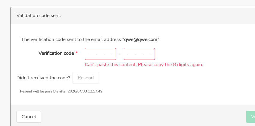 I suggested the - in the middle to make the code easier to read. Given this problem reported by you and oec I think moving back to 8 digits and removing the dash from the UI (having the 8 input together) will solve the copy and paste confusion. I will leave this open in case there is another proposal, otherwise i will change this in SPA and backend should also remove the - from the email / sms |