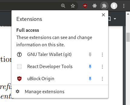 | Description | In the latest version of Chrome, installed extensions won't up in the browser's UI by default anymore. Instead it's literally hidden behind a "puzzle" icon. Here's two things we can do about it: 1. Educate users about it in the "wallet got installed successfully" screen 2. Implement a "declarative page action", which will cause a Taler-specific icon to show up on pages that contain a taler:// URI (does not require extra permissions) | ||||