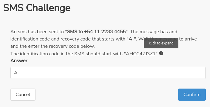 | Description | Even though the challenge UUID does not need to be entered, the long code shocked some users (in SMS). It would likely be best to truncate the challenge UUIDs in the messages and the dialogs. | ||||