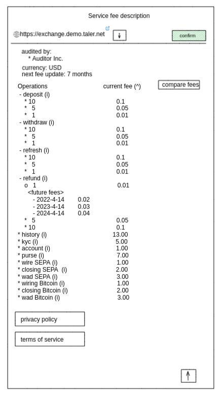 | Description | user should be able to choose the exchange and compare the fee of all operations additionally the privacy policy and terms of service should be accessible an example of design has been attached | ||||
