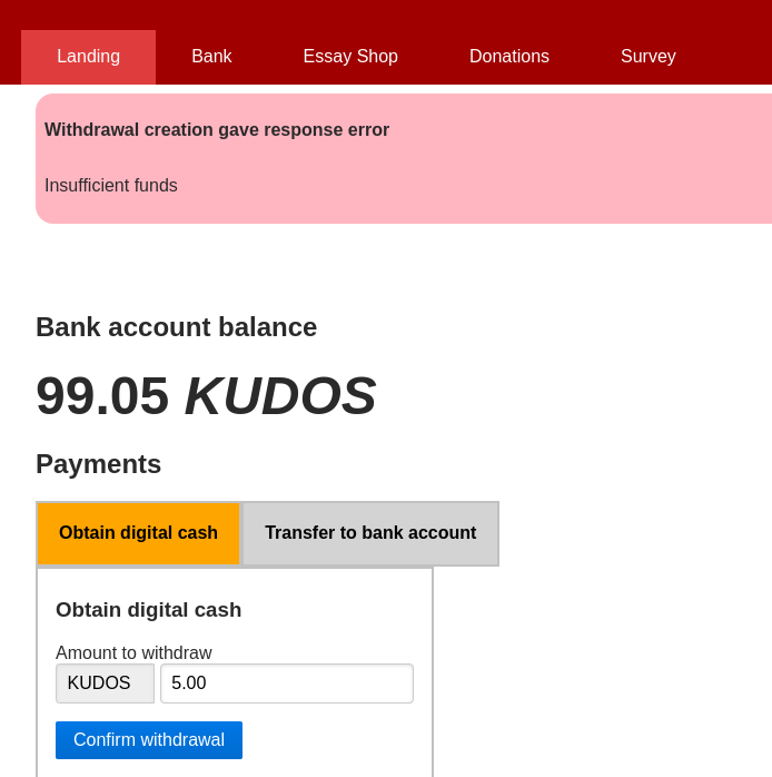 | Summary | 0007482: bank account seems broken when withdrawing high amount of kudos | ||||