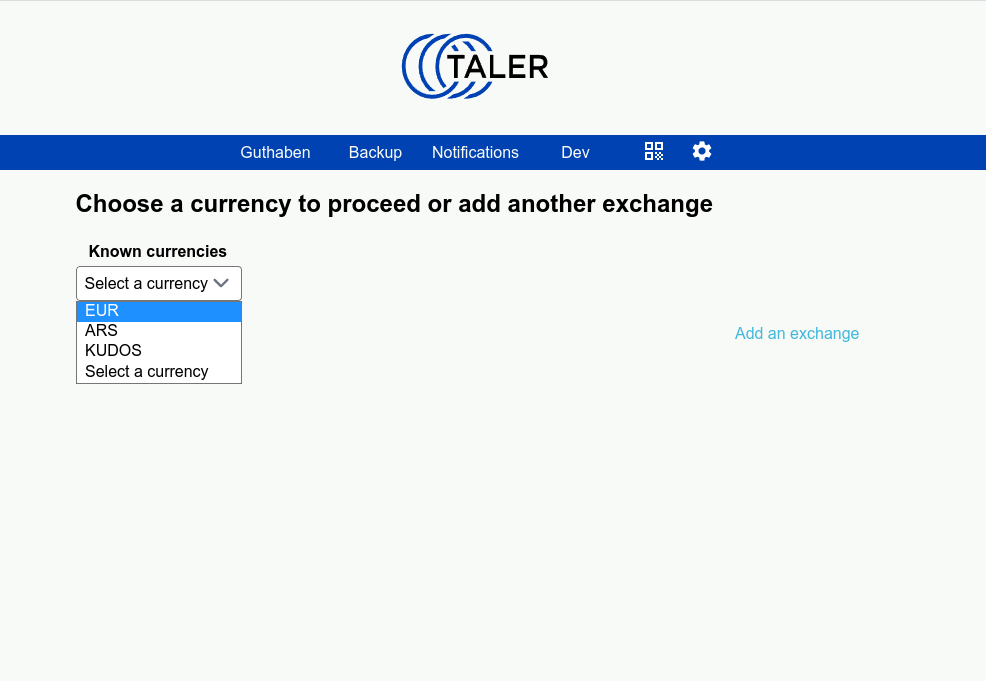 | Description | In the current version "dcddc4c53a59b087c5e48b6b20ed740514257bc8" of the wallet-webextension after adding a new exchange (such as https://exchange-age.taler.ar or a locally running one) and accepting the terms of operation, the drop-down in the withdraw page shows multiple currencies to choose from. However, whatever currency I select from the dropdown, it always resets to "KUDOS". | ||||