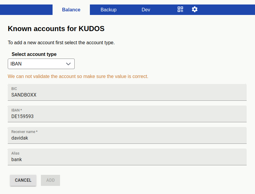 | Steps To Reproduce | 1. Open wallet balance 1. Click "Send" 1. Put in amount like 5 and click "deposit" to bank 1. "There is no account to make a deposit for currency KUDOS" 1. Click "Add" 1. Fill out your bank details 1. "We can not validate the account so make sure the value is correct." | ||||