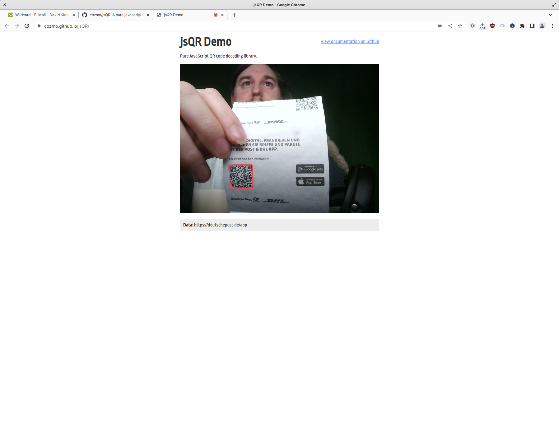 fixed at 9d9a88af010ac39f026299ebccea3e1164e5242e moved to a lower level implementation, tested on firefox and chrome also implemented reading qrcode from file |