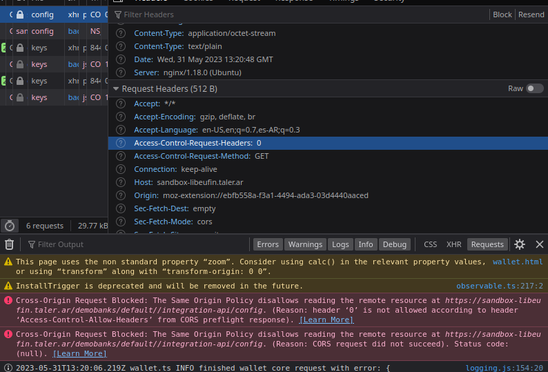 | Description | I'm happy to take this but after we agree how we can do it and IF we can do it. The current situation: When wallet core queries /config of demobank it is adding the header ``` Access-Control-Request-Headers: 0 ``` in the OPTION request. Chrome is not doing the OPTION request. Firefox does it, and fails because the response of the server does not match with the request requirement. easy to fix, but hard to find. What I want with this issue is that we found a way to prevent this issue to happen, maybe with unit test or with a clear message error. Things to consider: * CORS request failure are opaque: usually seen as "request failed" * Depends on the platform: is it possible to simulate in node? * The error may also depend on the server response | ||||