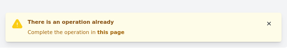 now the text changed from "Complete or cancel the operation in this page" to "Complete the operation in this page" and the notification has a X where can be dismissed |