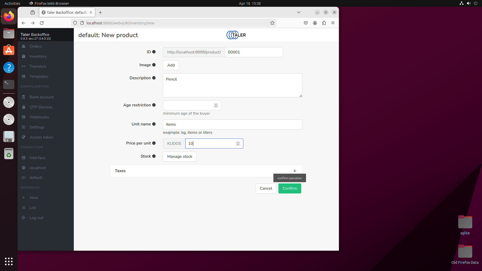 | Steps To Reproduce | Install the merchant backend insert a new item. | ||||