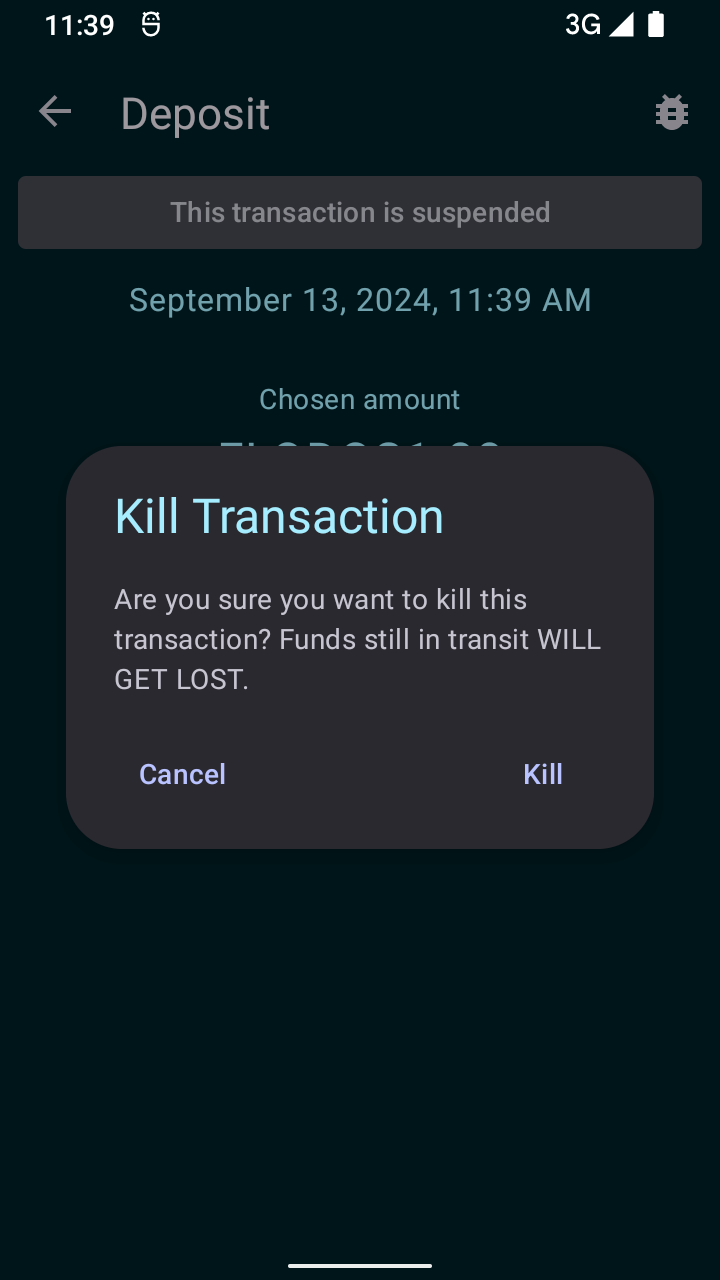 | Description | When a transaction is failed, the user might lose money. We should warn them about it! Also, the "kill" terminology is neither accurate (the analogy to killing a process doesn't hold up) nor clear to non-technical users. | ||||
