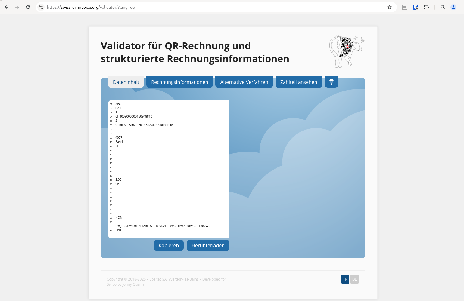 The code we now generate includes a correct IBAN and also infers the country code from the IBAN. According to the swico validator, it is correct, but would be great to also do another check against a real banking app. |