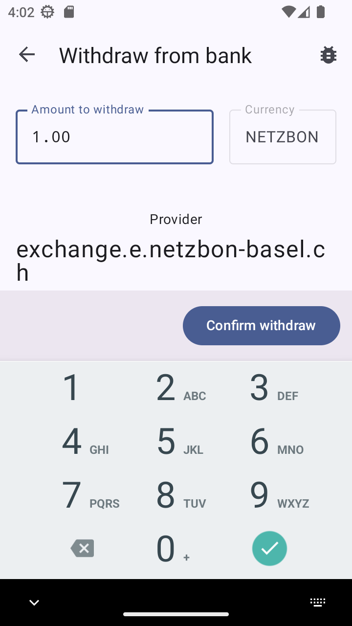 | Description | specifcally, the currency is shown twice, and in the amount entry field for the number NETZBON overlaps with the actual number to be entered without space. It would be better to only show the currency once (on the right of the amount is probably fine). We should also check on iOS... | ||||