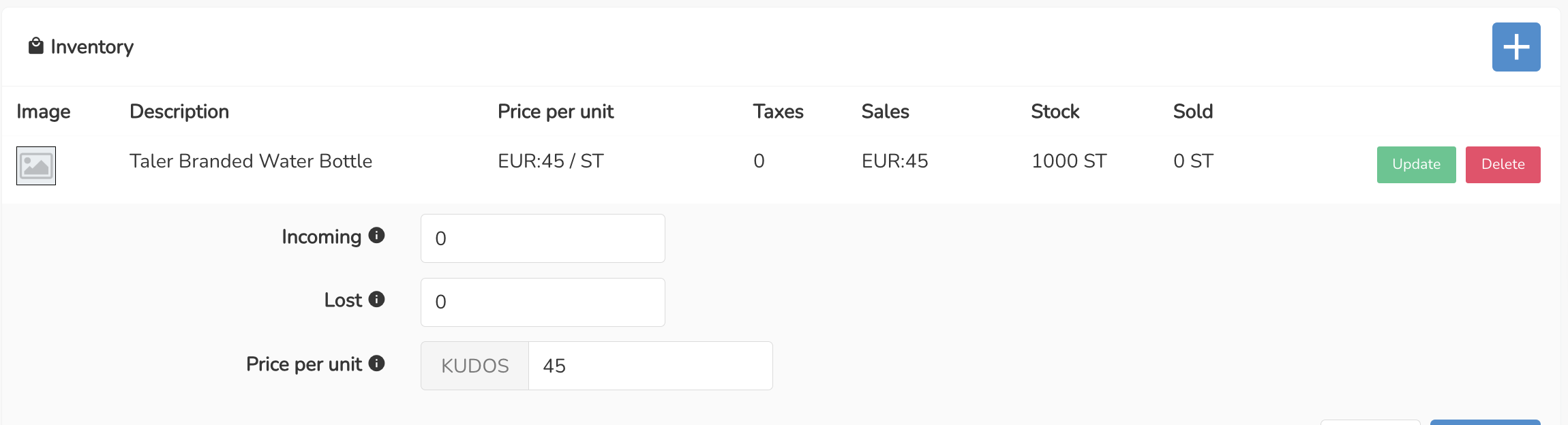 | Description | https://backend.demo.taler.net/instances/sandbox/webui/#/inventory for a product with currency EUR in the inventory page, we see EUR, but if we go to "Quick edit" or "Update", there is KUDOS. See screenshot below | ||||