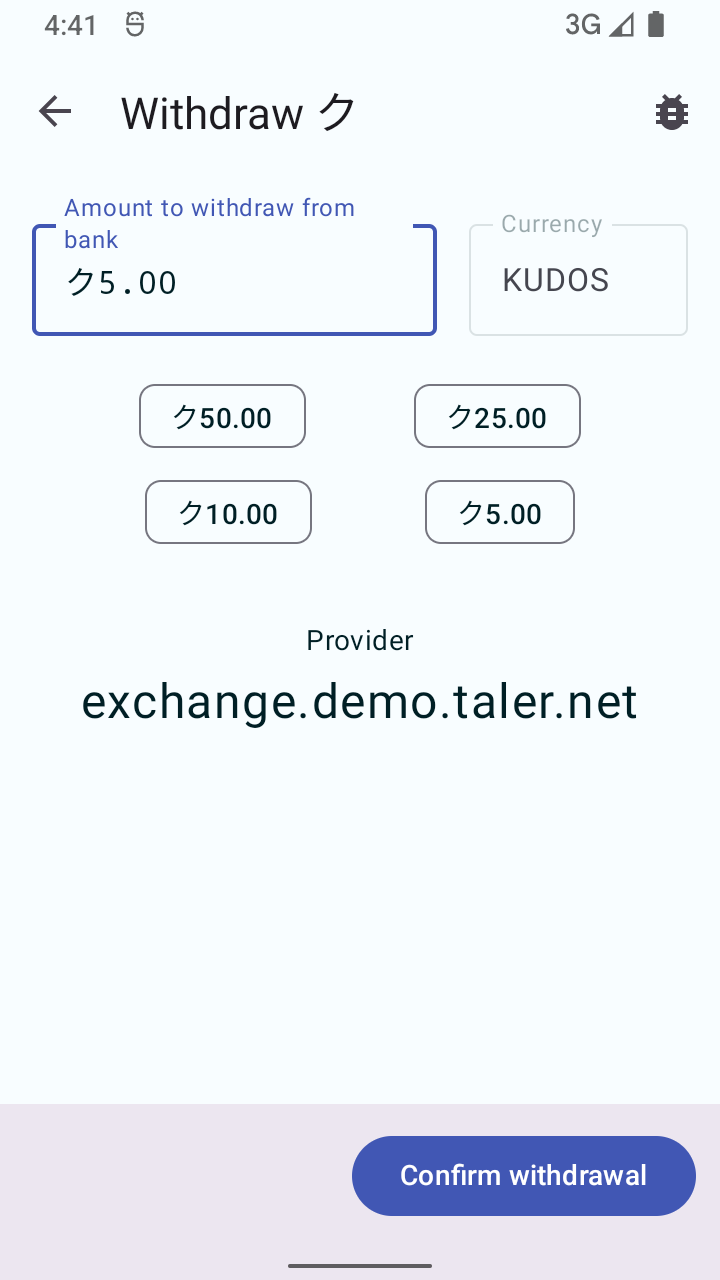 | Description | ... as a label for the currency entry field. We had native speakers confused by "withdraw", their suggestion was to quality the wording to make it clearer. | ||||